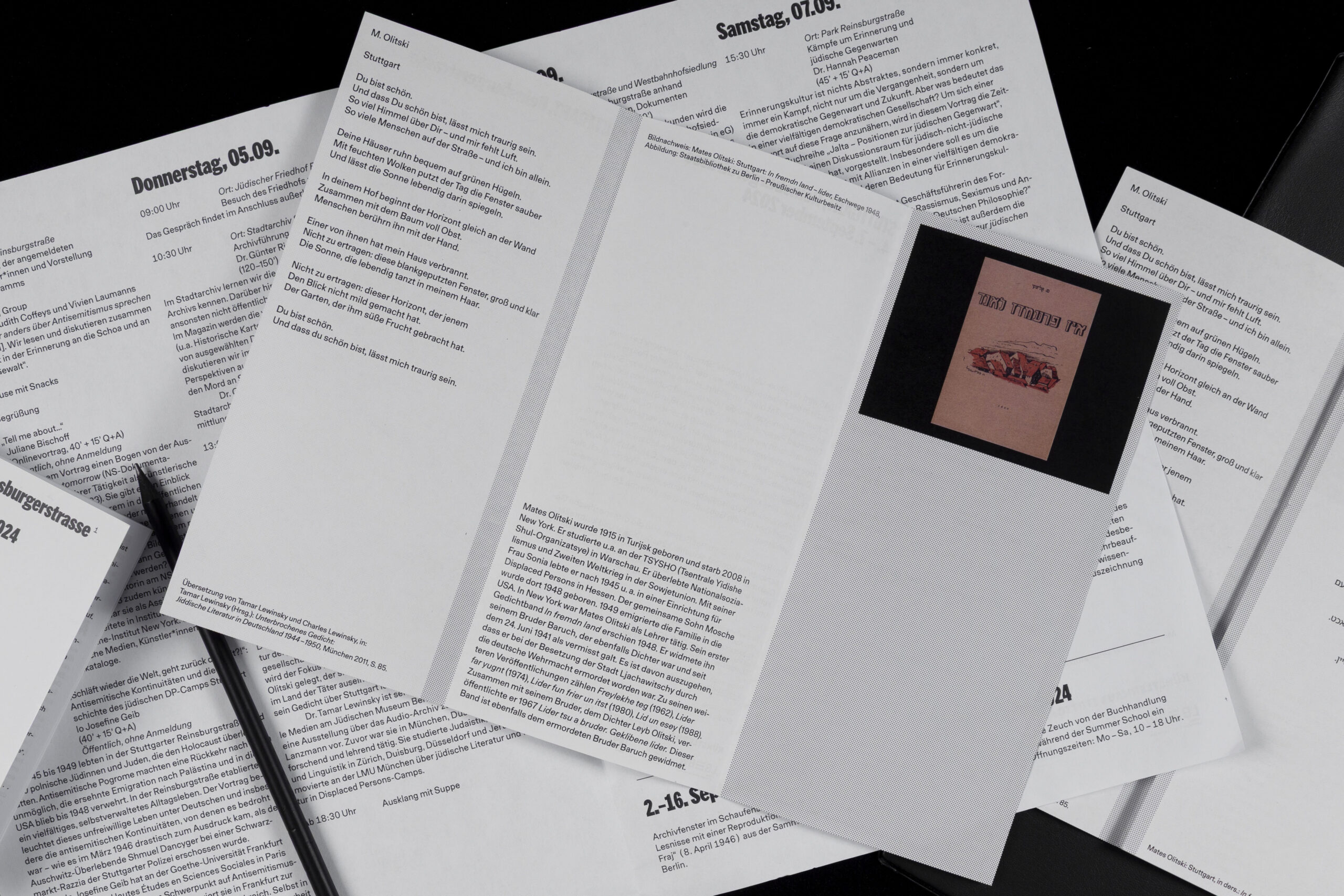 1 “STUTTGART, Reinsburgerstraße . . . Do gefint zich einer fun di greste jidisze lagern in der Amerikaner zone” steht auf Jiddisch mit lateinischen Buchstaben auf dem Titelblatt des Stuttgarter DP-Camp-Albums als Bildunterschrift unter einer Schwarzweißfotografie geschrieben. Mit dem Fotografen Alexander Fiedel schauen wir von einer Verkehrsinsel aus die Reinsburgstraße hinunter. Das Album befindet sich heute im United States Holocaust Memorial Museum in Washington. Dort wird es folgendermaßen beschriftet: “Title page of the Stuttgart Jewish DP camp album with a photograph of the Reinsburgerstrasse. The Yiddish caption reads, ‘Stuttgart, Reinsburgerstrasse . . . on which is located the greatest Jewish camp in the American zone.’” Die Reinsburgstraße, die sich im Stuttgarter Stadtbezirk West befindet, führt von den Stadtteilen Rotebühl und Feuersee hinauf auf den Hasenberg und endet etwas unterhalb des Westbahnhofs.