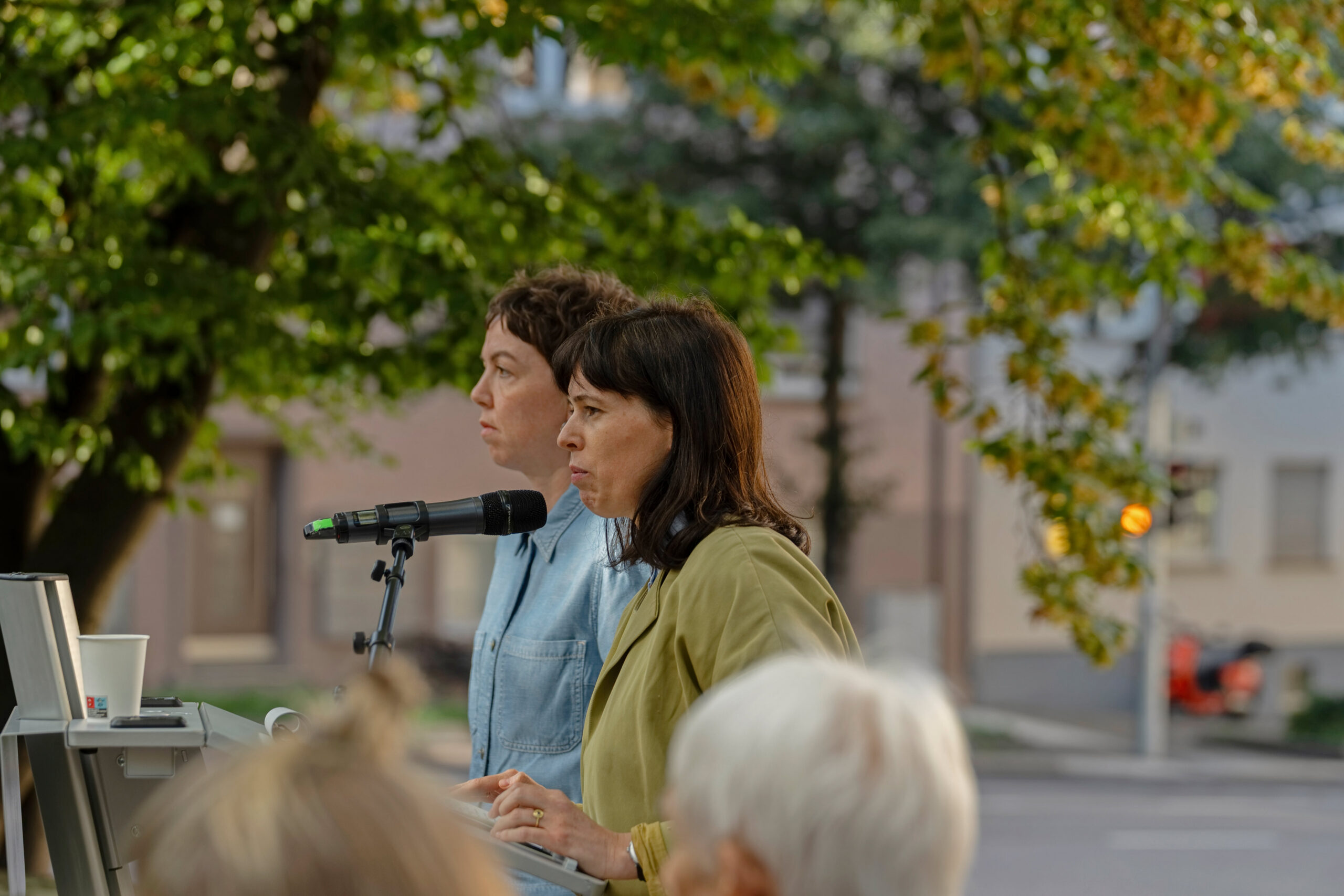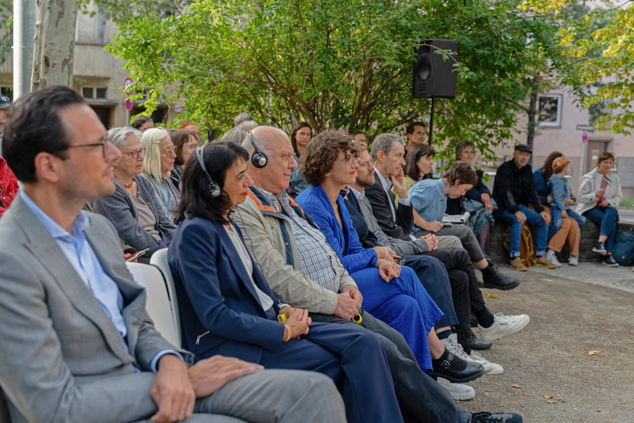 Die Platzeinweihung endet mit einem informativen Rundgang zur neugestalteten Erinnerungsstele, zur Summer School, zu den historischen Ereignissen uvm.
